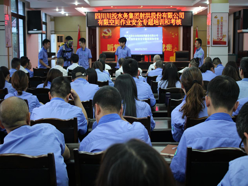 為貫徹落實《四川省有限空間作業(yè)安全管理規(guī)定》等法規(guī)要求,提升員工有限空間作業(yè)安全意識和應急處置能力,預防作業(yè)過程中窒息、缺氧等事故的發(fā)生,川投水務射洪公司于2025年5月9日開展有限空間作業(yè)安全專題培訓和考核。公司領(lǐng)導班子、各部門負責人、員工現(xiàn)場共計72人參加。